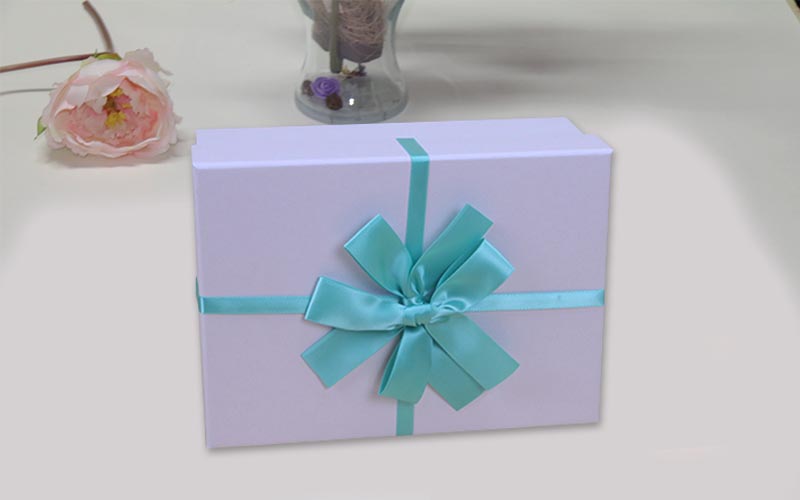 1.材質:盒子面紙特種紙空白有紋路的紙張,裱1500G雙灰闆底盒跟天盒一樣的材質做工,盒子表面年各種顔色絲帶。此款服裝包裝盒爲各種通用款式機器批量制作。