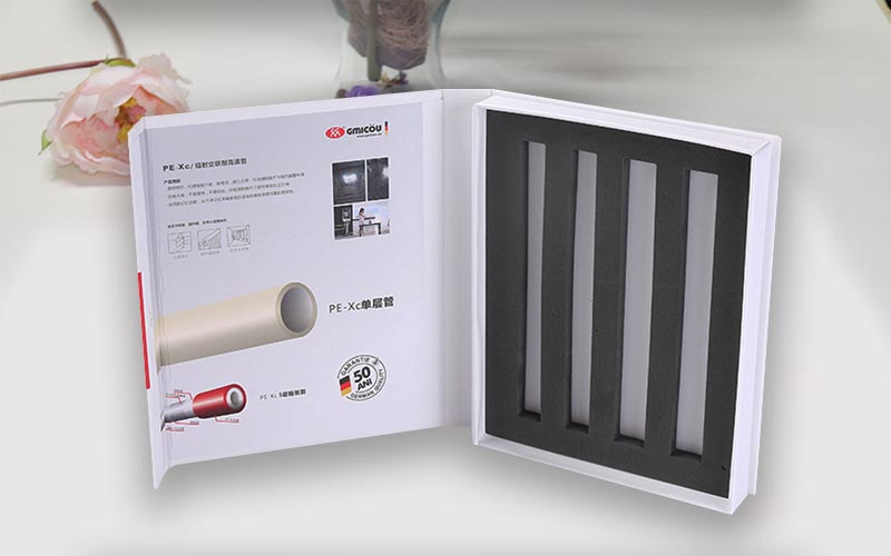 1.材質:盒子面紙採用157G銅版紙單面彩色印刷,覆亞膜裱1500G雙灰闆,盒子内托用黑色EVA開槽位放産品,盒型爲翻蓋禮品盒,整款包裝盒機器制作,盒型平整外觀精緻。