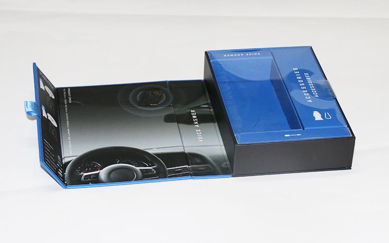 1.材質 :盒子面紙用157G銅版紙單面彩色印刷,單面啞膜圖片文字UV,裱1300G雙灰闆,内盒材質一樣,内托用卡紙啤好粘好固定,放好産品上面放一層磨砂的PVC,盒型爲翻蓋盒